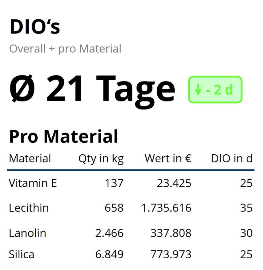 Werttreiber stabilisieren: OTIF ↑ - DIO ↓ - OEE ↑ - Stückkosten ↓